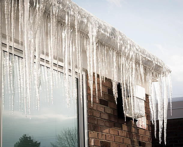 - Ice dams forming over gutters in winter